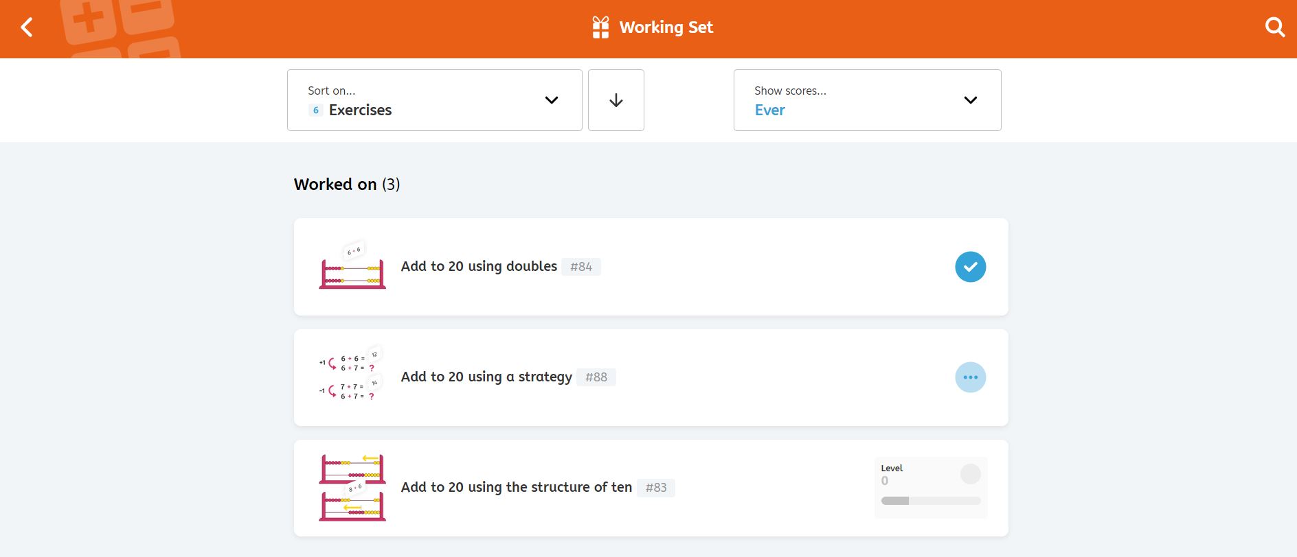 Snappet offers the students the opportunity to work independently on learning objectives at their own level. The teacher is able to assign learning objectives for each student in the working set. The option for students to work in their working set only appears when a teacher has assigned learning objectives to this section specifically.